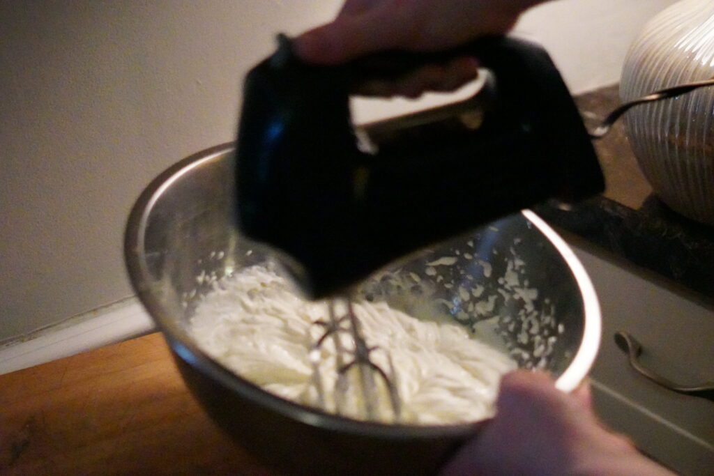 With a hand or stand mixer, mix together the sour cream, sugar, and almond extract.