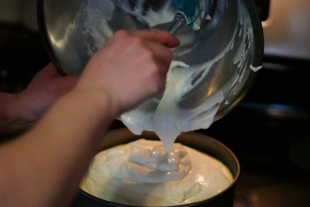 A twist on a traditional cheesecake, this cake has the addition of almond extract and a second layer of filling that keeps the cheesecake moist and flavorful throughout.