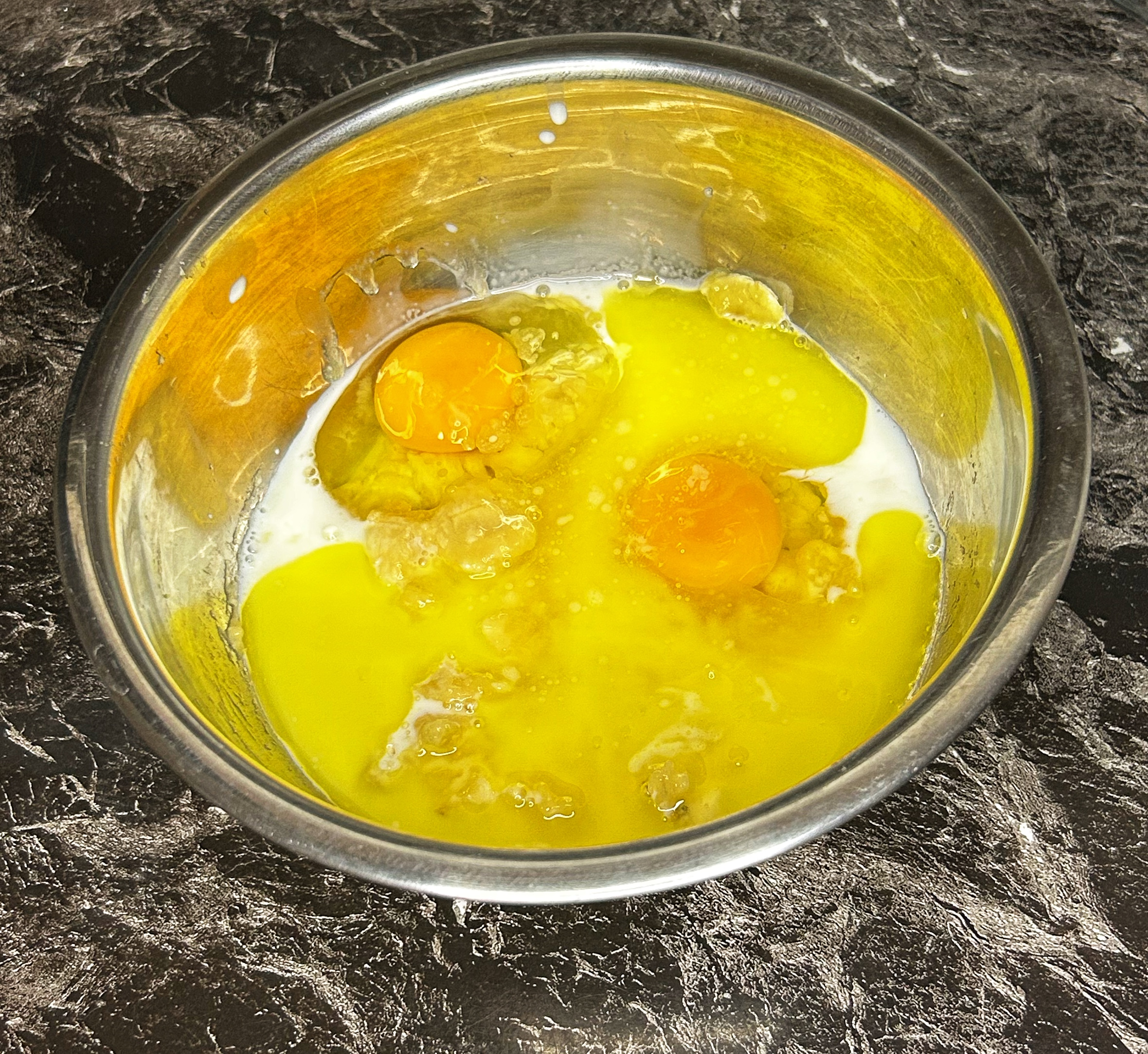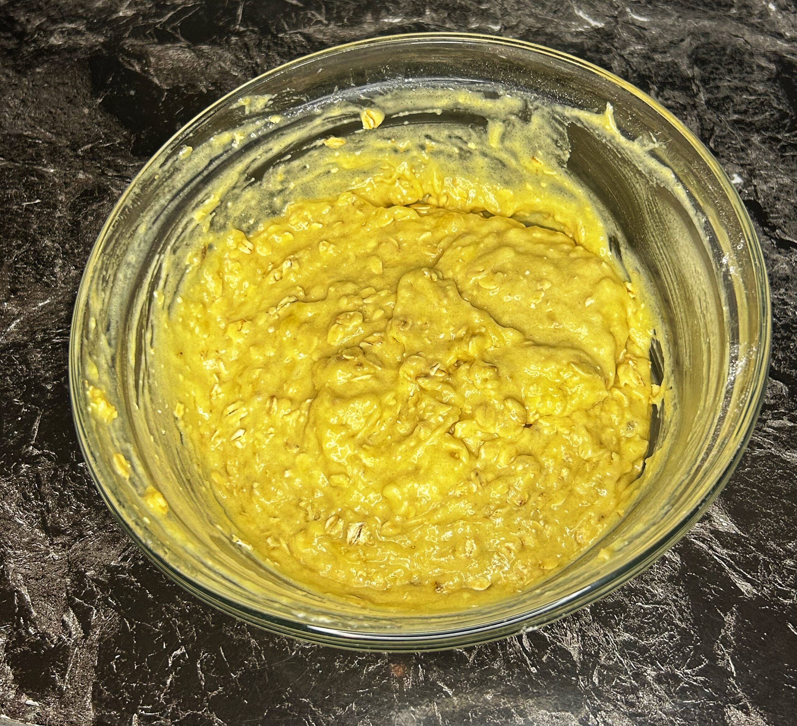 Step 3: Combine mashed banana and remaining ingredients; add to flour mixture. Stir just until moist.