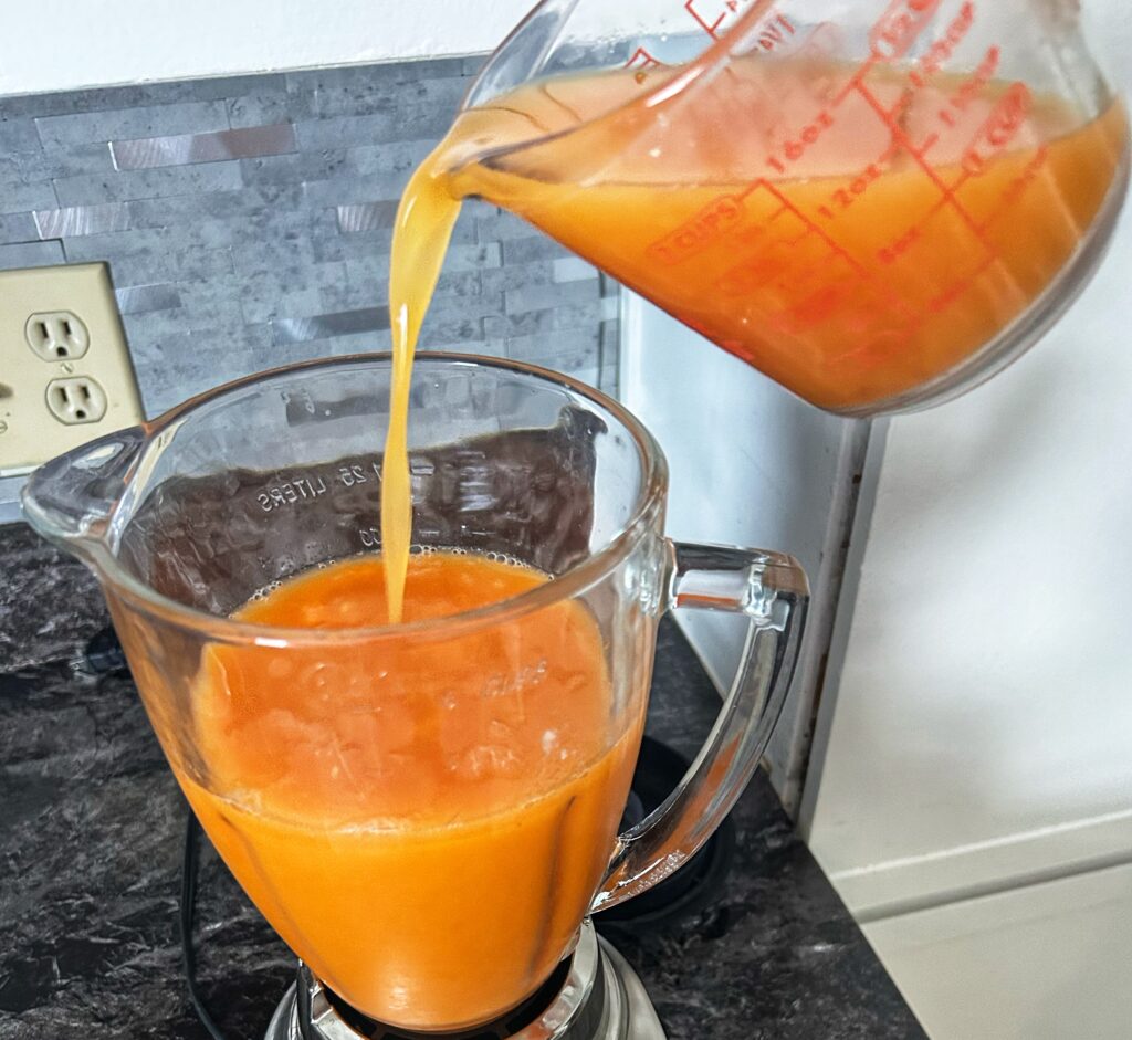 *For a smoother, pulp-free drink, strain mixture through a cheesecloth-lined sieve, pressing with a wooden spoon or rubber spatula to squeeze out the juice; discard solids.