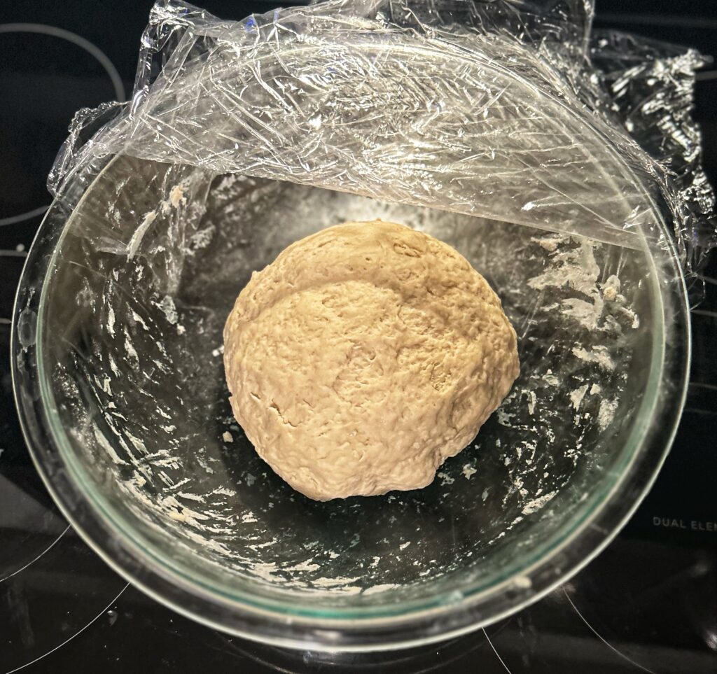 Step 3: Cover with plastic wrap or a damp towel and let sit for 1 hour, or until doubled in size.
